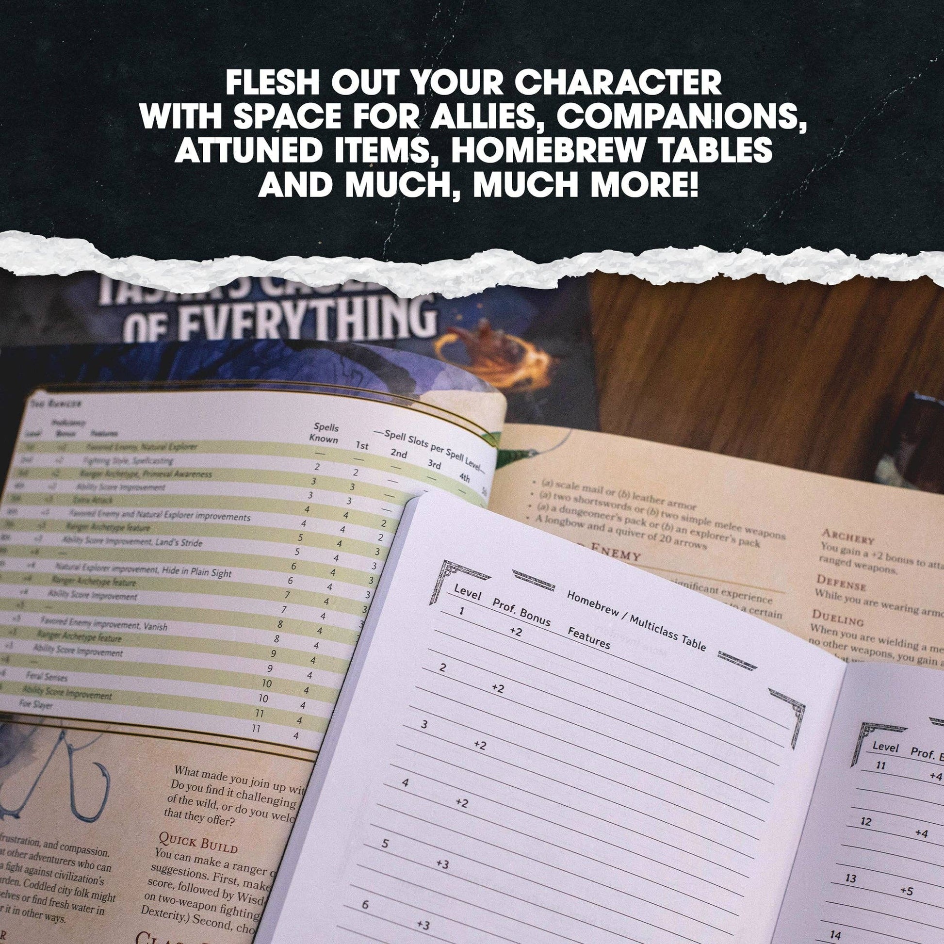 Time to level up your Dungeons & Dragons adventure with our Player’s Journal for 5e. Make and track every aspect of your character throughout an entire campaign. Features stylish art, equipment tracking, a spell section and a massive notes section so you won't forget any important detail. Great for new and experienced players alike.