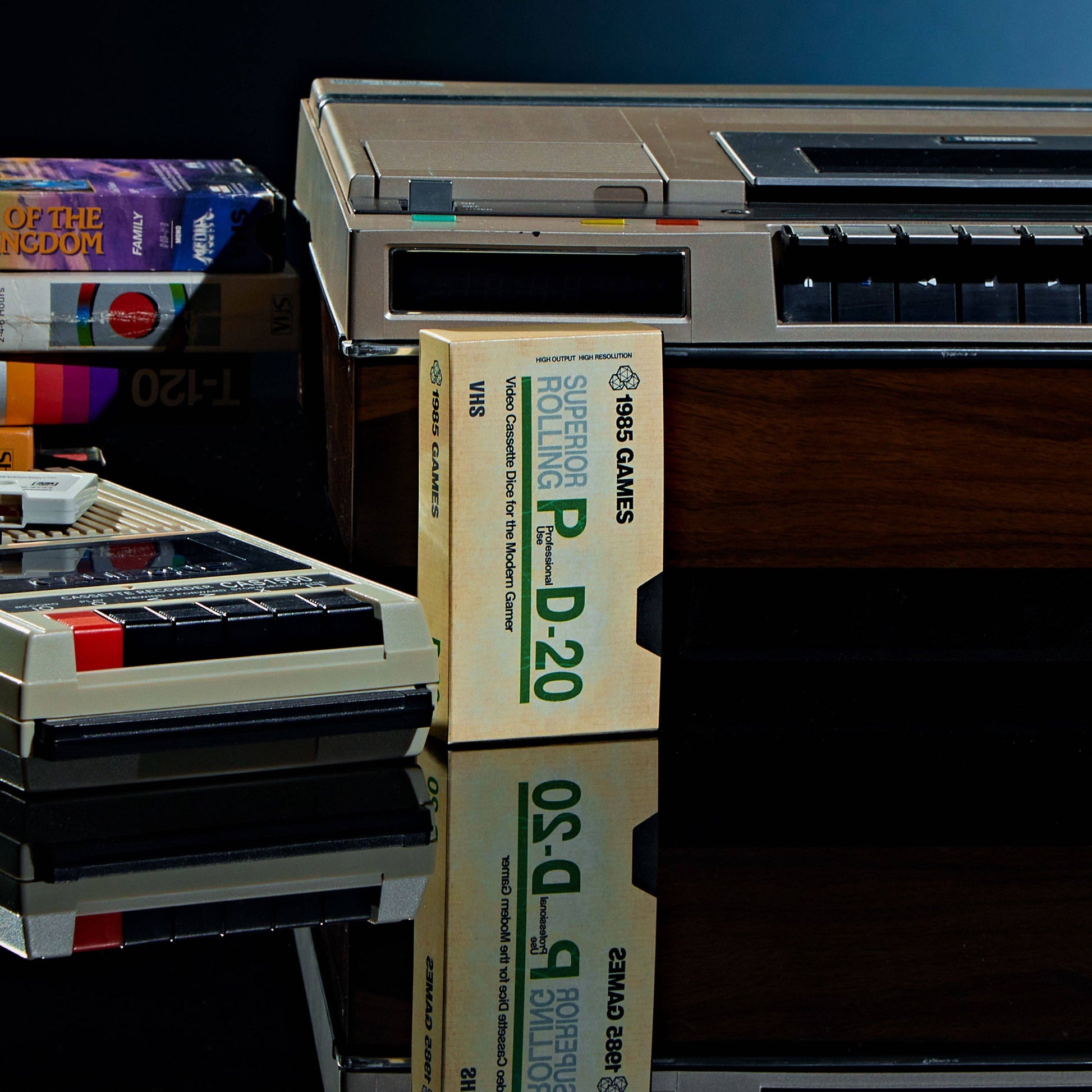 1985 Games Presents... The last set of VHS-themed sharp-edge resin dice you'll ever need.