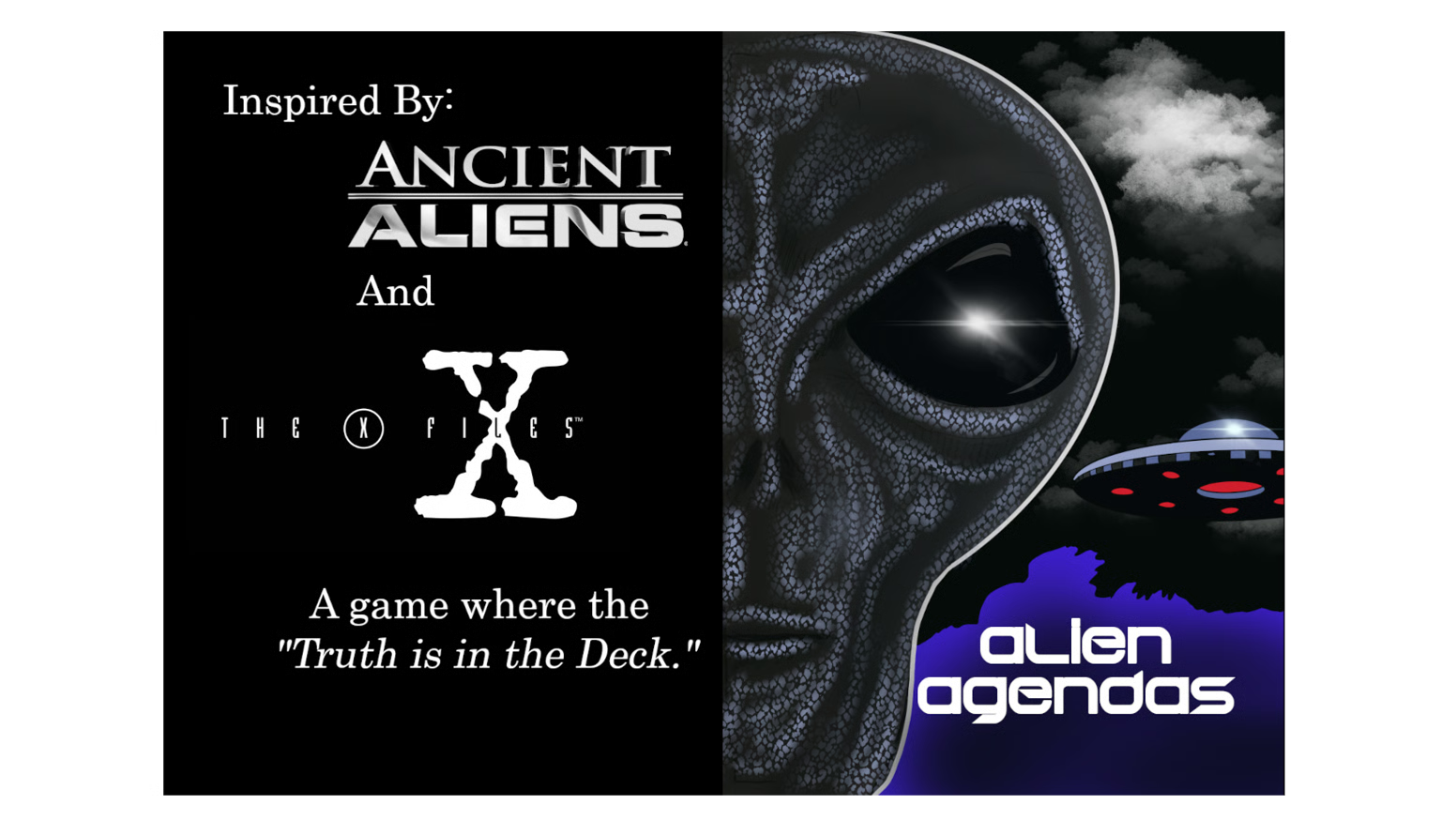 Maine-made! Originally on Kickstarter by Mythic Portal Games. Find out more: https://www.kickstarter.com/projects/132397413/alien-agendas-a-card-game-where-the-truth-is-in-the-deck