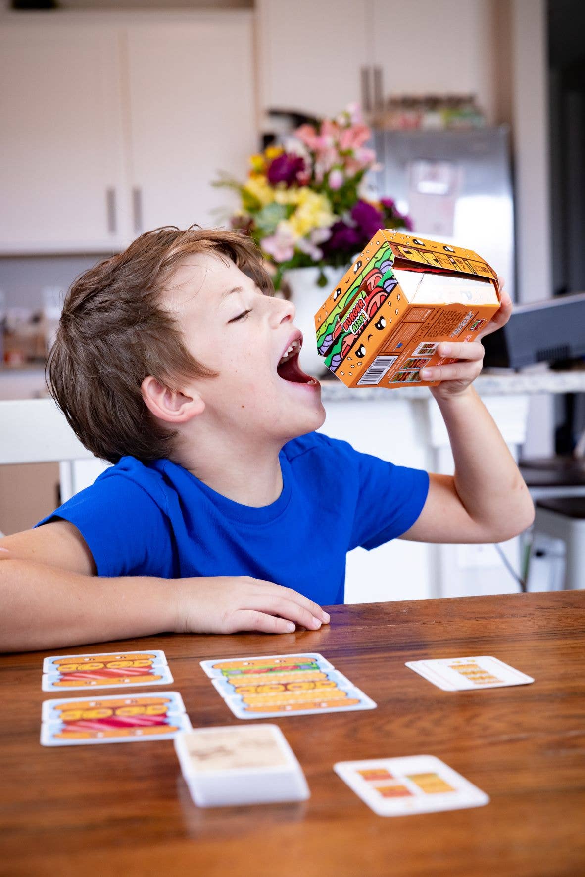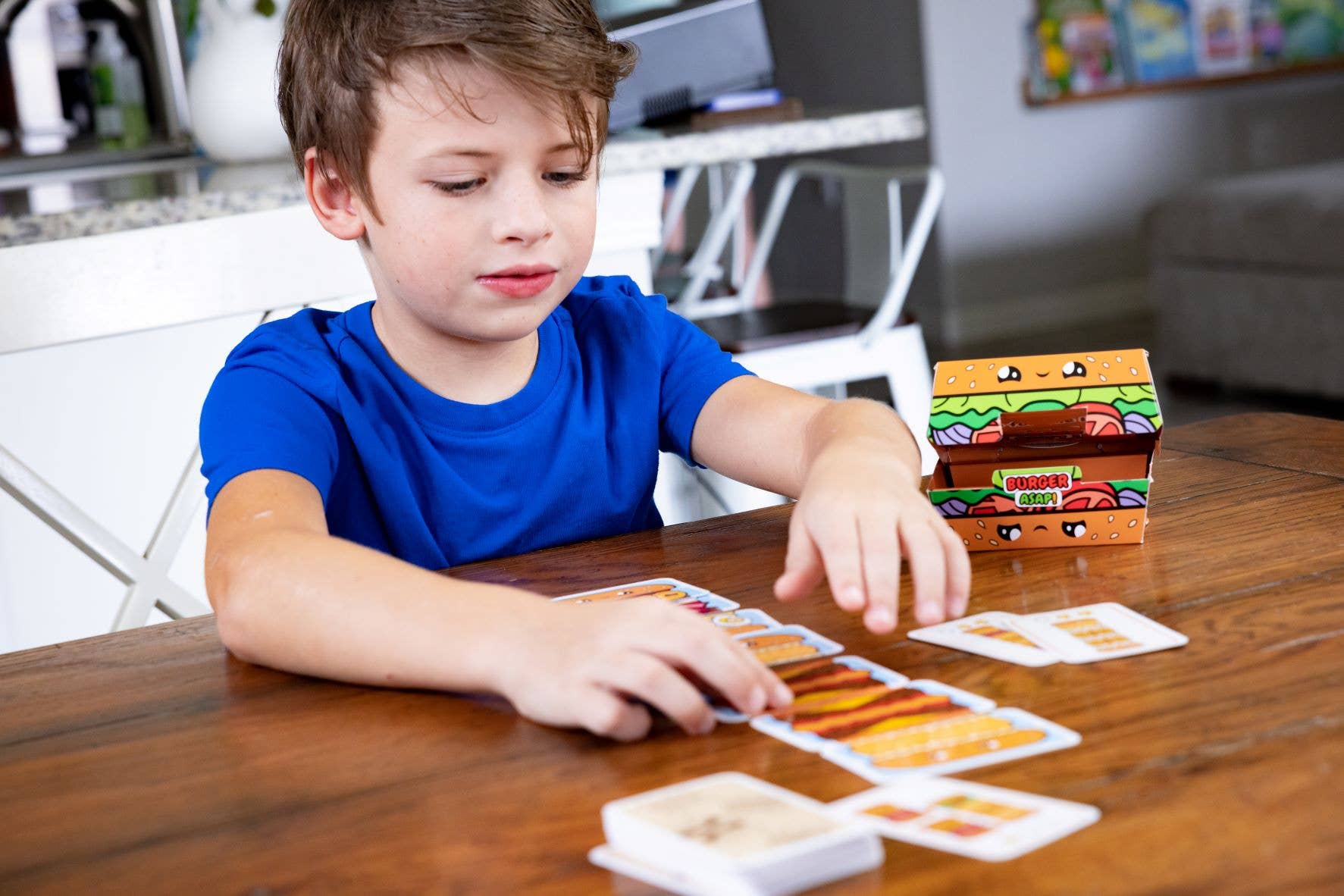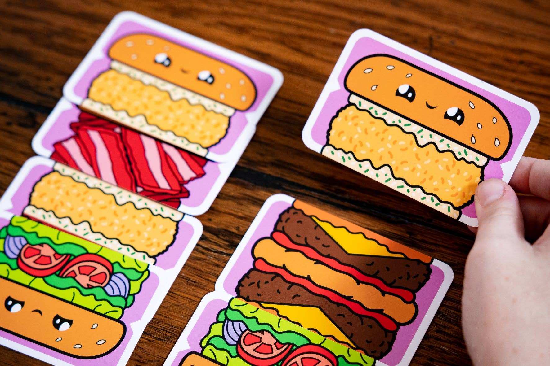 In this fast matching game, take your set of double sided ingredient cards and start making burgers! Race to flip the cards and arrange them in the proper order to recreate the recipes one at a time and earn points based on their difficulty level. This brain teasing game is a fun way to test your speed, memory and logic skills!