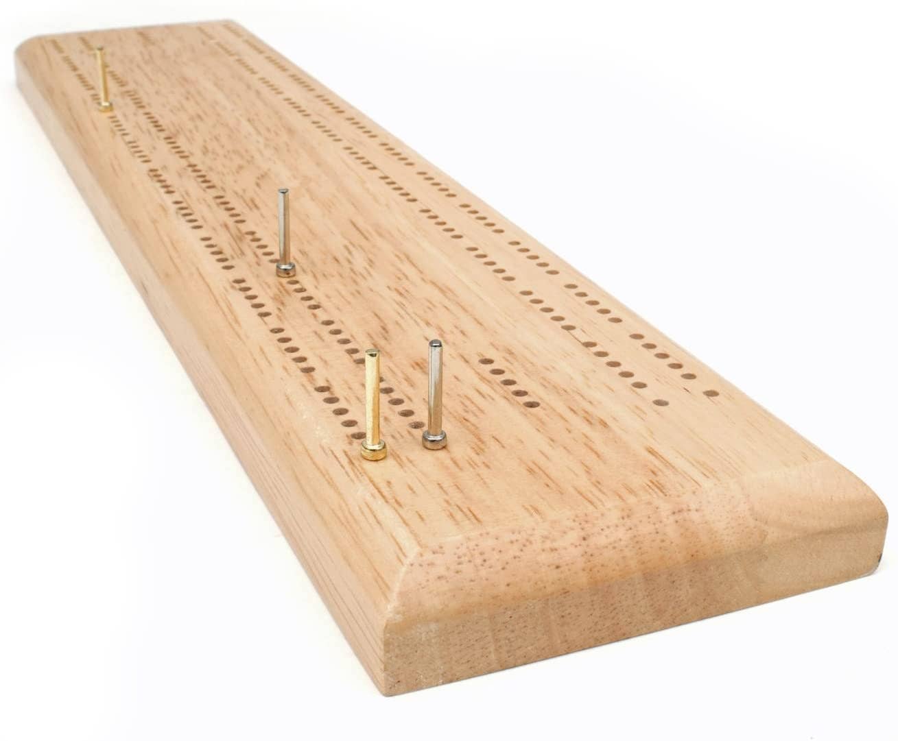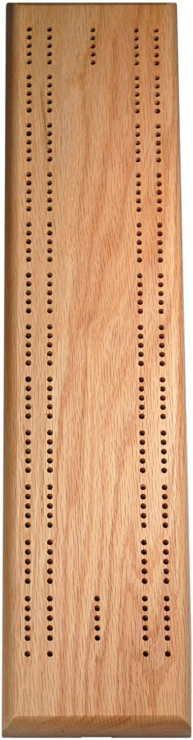Here is a beautifully crafted tournament styled cribbage board in solid Oak wood. This is considered a sprint styled board with 60 holes straight up and 60 holes straight back. The scoring holes are perfectly organized, aligned and drilled on the board. There are additional holes in the center for tracking wins of multiple games. This is a cribbage board that you will be proud to play on while showing your friends and family. This is an heirloom to be cherished for many years to come. Do bear in mind that there is plenty of room to personalize this board with your name or with the name and title of the local club championship tournament and date.