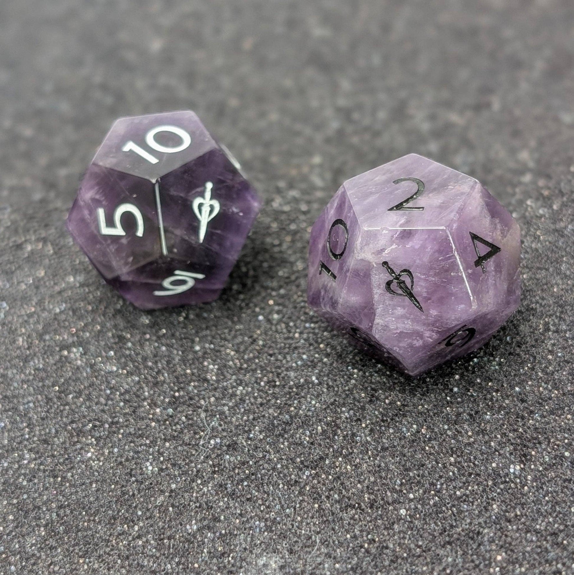 Set of two 20mm Amethyst gemstone D12 dice