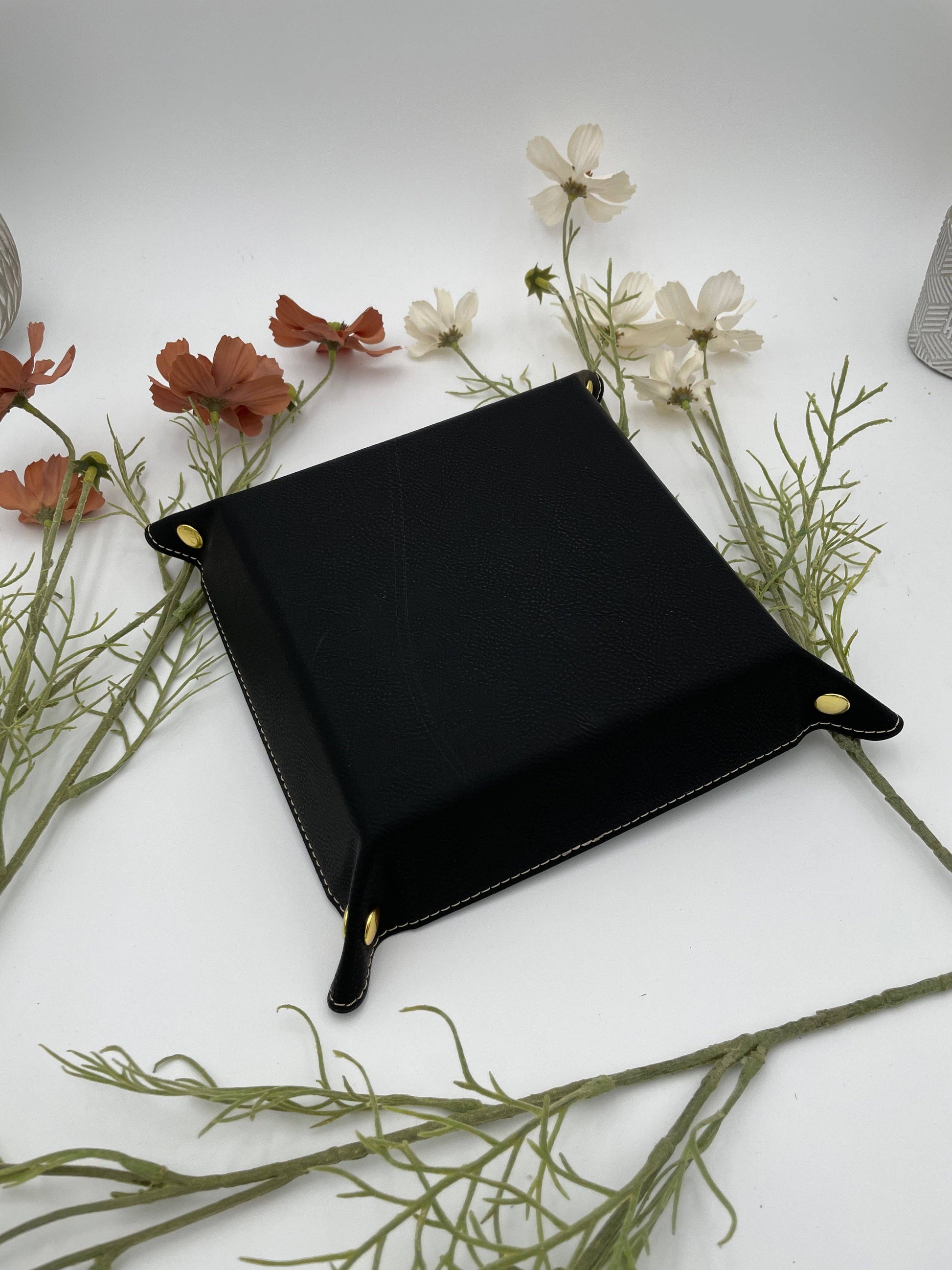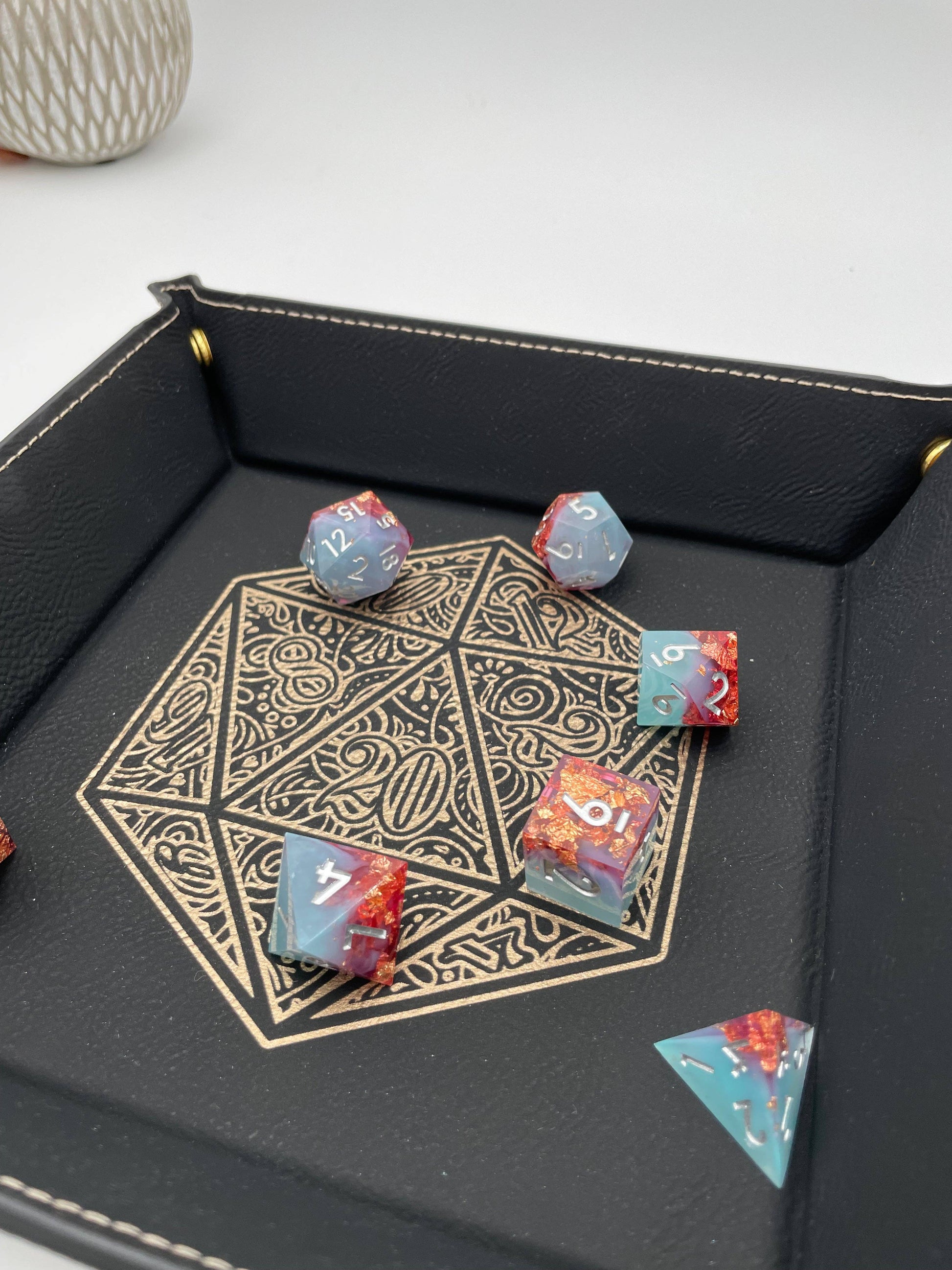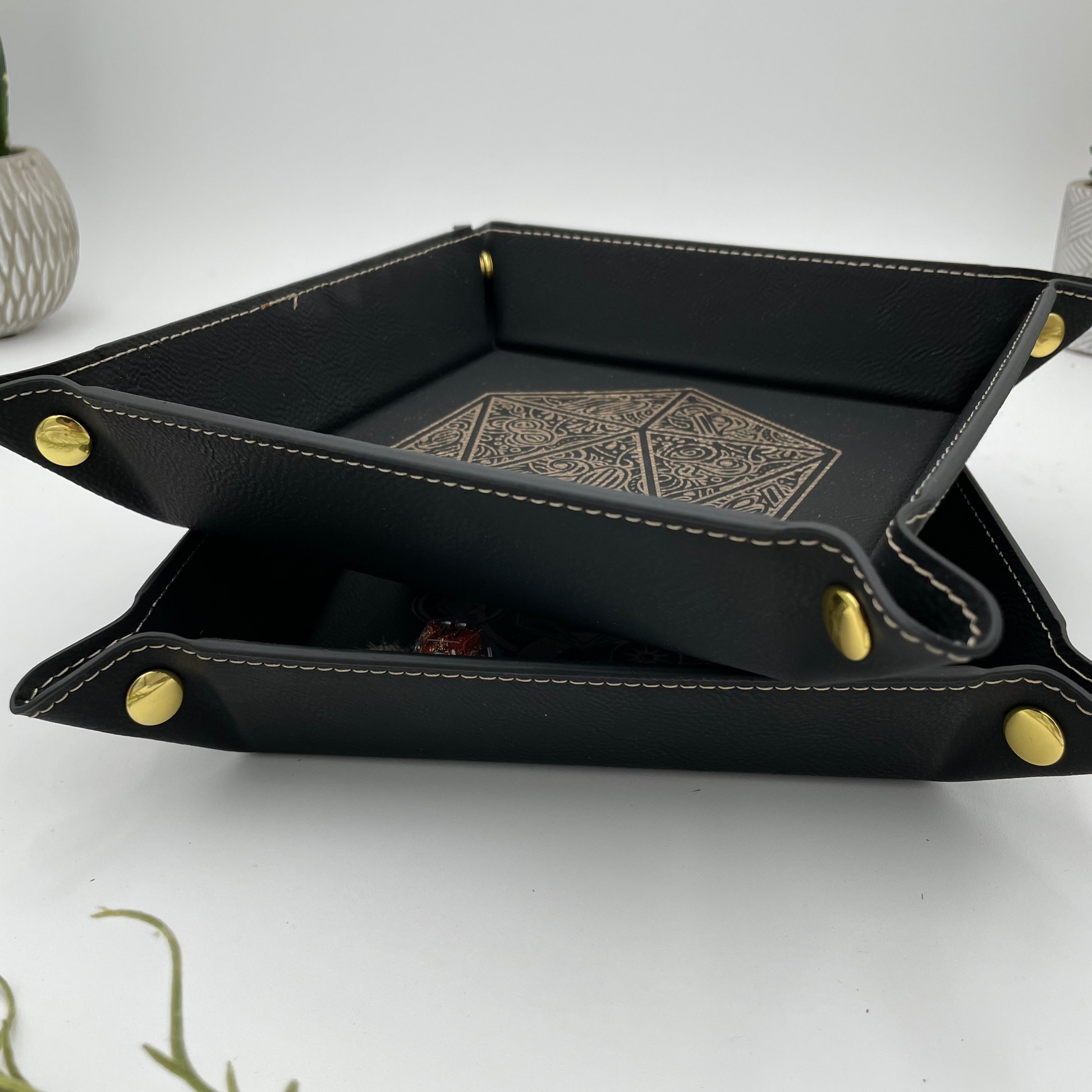 EBONWOOD - Gilded D20 Dice Tray - Vegan Leather DnD Dice Rolling Tray
