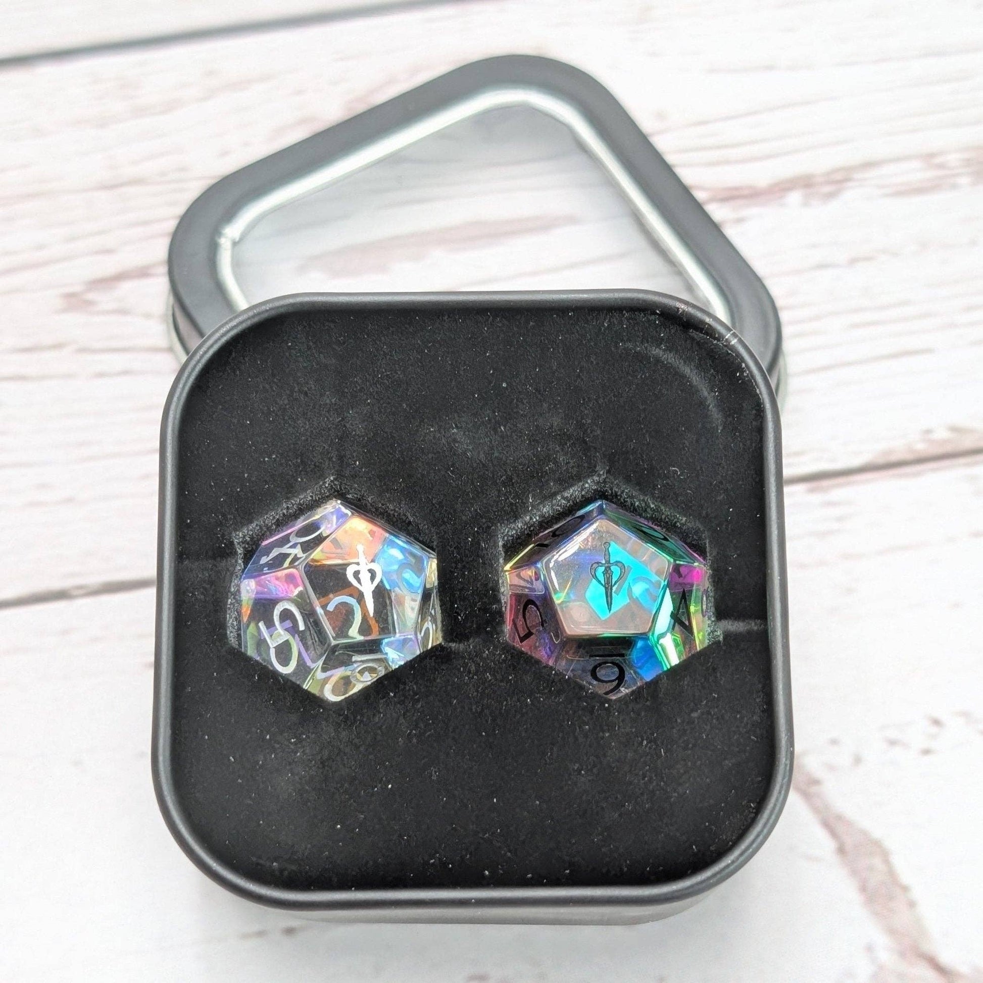 EBONWOOD - Rainbow Glass - 2pc Gemstone Duality Dice for Daggerheart