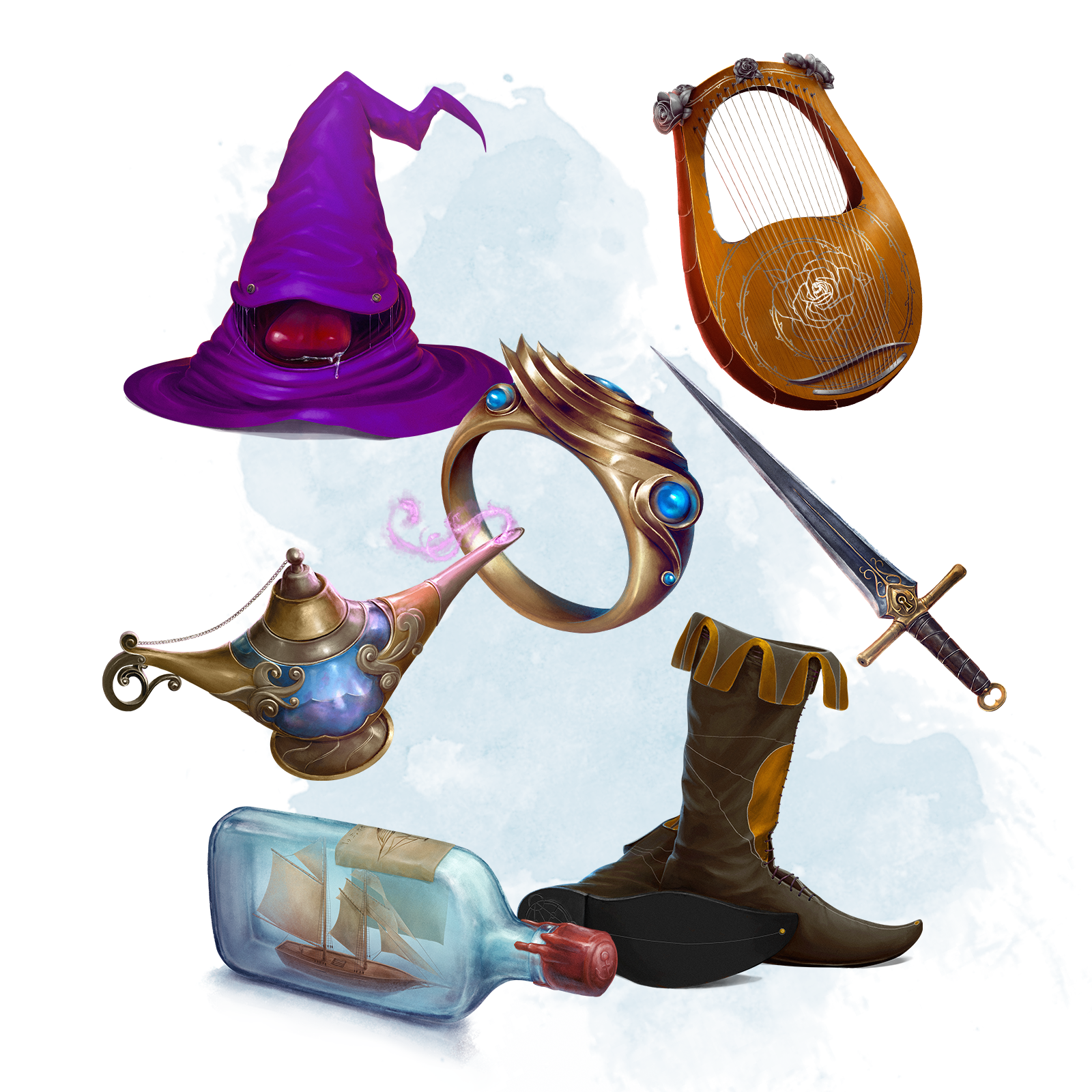 This 416-page compendium is filled with over 500 illustrated magic items. Each one has been been peer-reviewed by thousands of passionate players from around the world, and have been further sorted into easily-usable treasure tables. Also included are 12 new character subclasses, 2 new playable races, 14 new settings, and almost 100 new creature stat blocks that can be easily integrated into any Fifth Edition campaign! Magic items like the fool's lamp or wind-up merchant add memorable roleplaying opportunities to your games, and strike a charming balance of mechanical intrigue, memorable flavor, and character-defining lore. Make your game's adventures more rewarding with new and exciting magical treasure! Book dimensions are 8.5" x 11". * 416 pages * 504 illustrated magic items * 2 new playable races * 12 new subclasses, one for each of the 12 base classes * 14 campaign-agnostic plug-n-play settings * Over 100 new monster