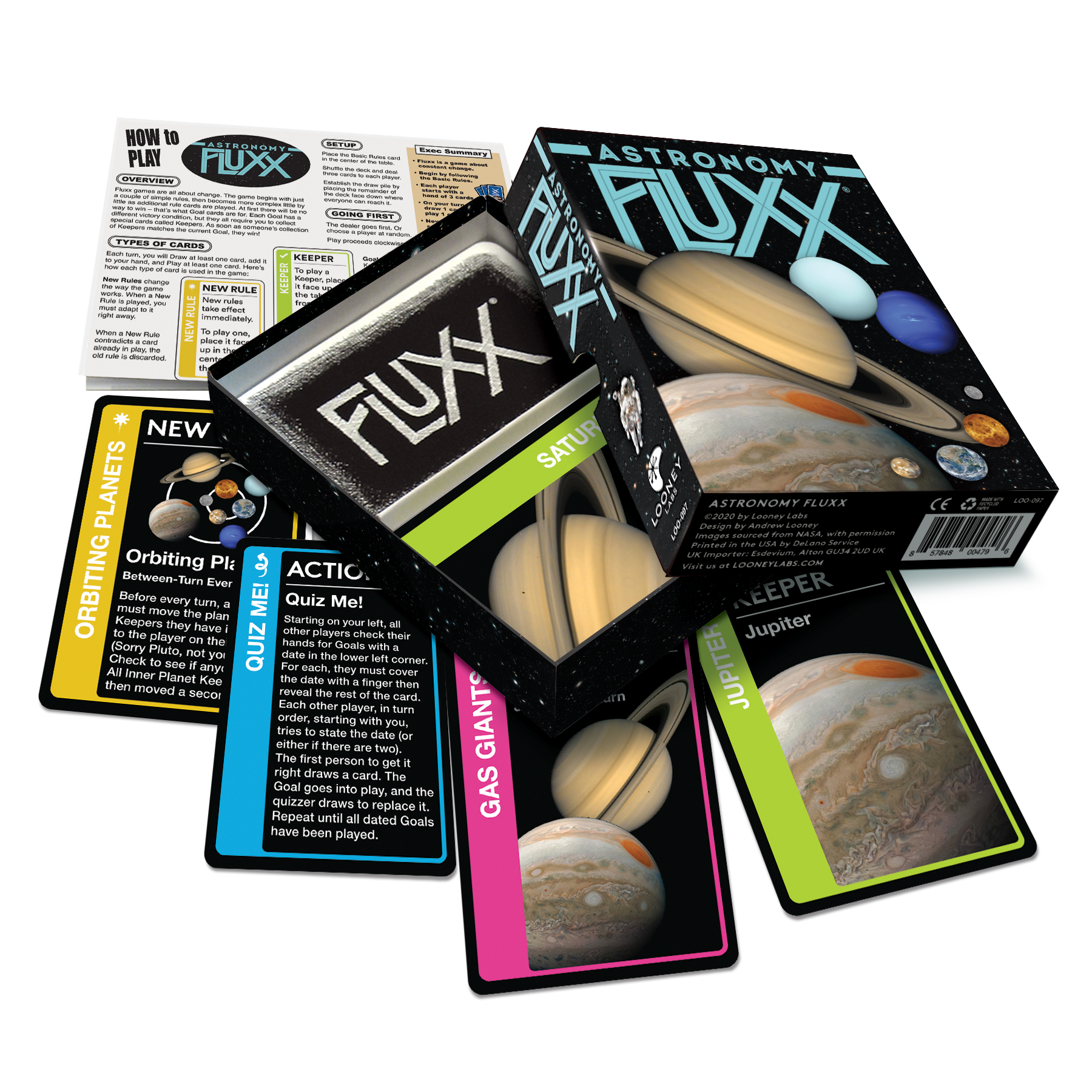 If you've ever dreamt of being an astronaut, Astronomy Fluxx is for you! This version of Fluxx takes you to outer space, but this time it’s not sci-fi. Featuring stunning NASA photographs of planets and other astronomical objects, you'll have a blast while learning about space and humankind's space flight history in this exciting installment in the educational Fluxx series.